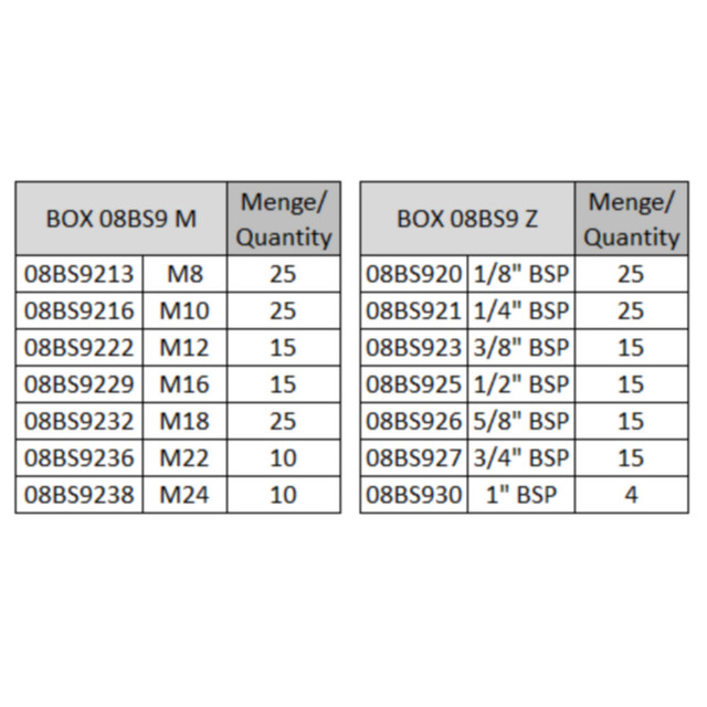 Комплектація: 7 розмірів, 125 шт. (метричний набір), 114 шт. (дюймовий розмір)